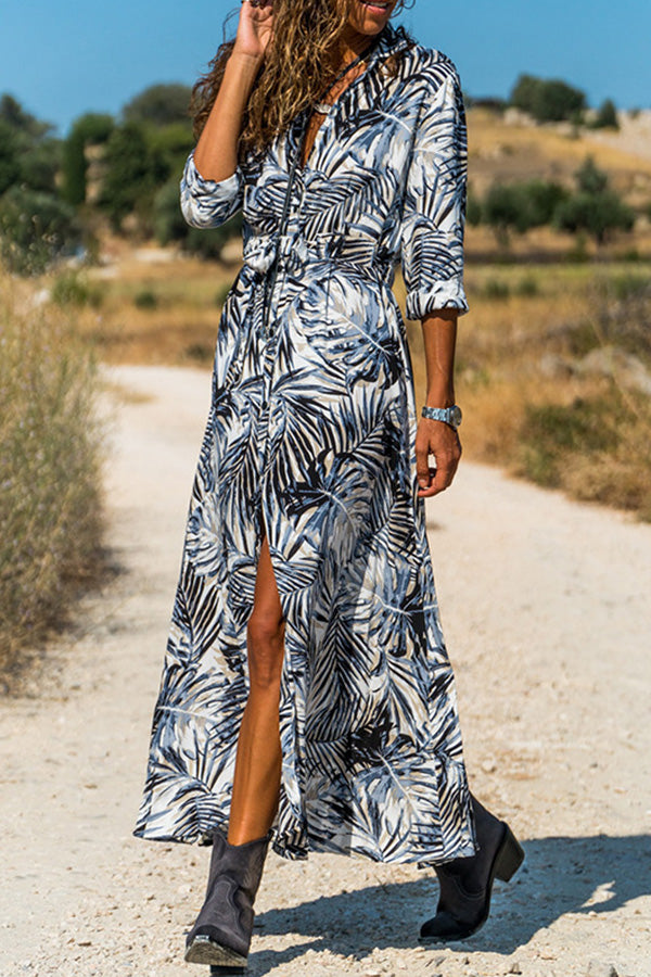 • Lapel-collar boho-print single-breasted maxi dress