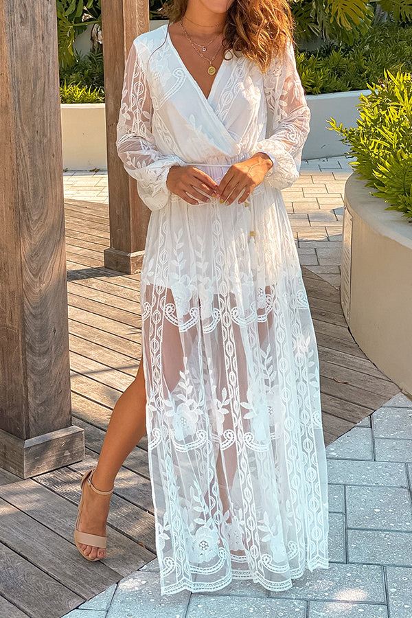 OFF WHITE LACE MAXI DRESS WITH BELT