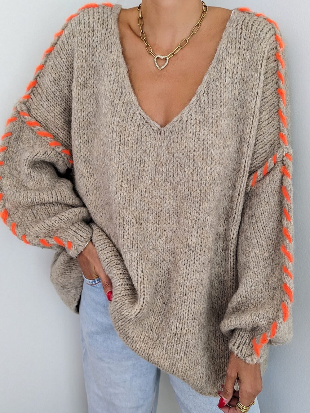 Perfect for those colder days, this baggy print V-neck long sleeve sweater is made from high quality fabric, ensuring warmth and comfort. Its relaxed and casual fit makes it an ideal piece to stay warm and stylish.