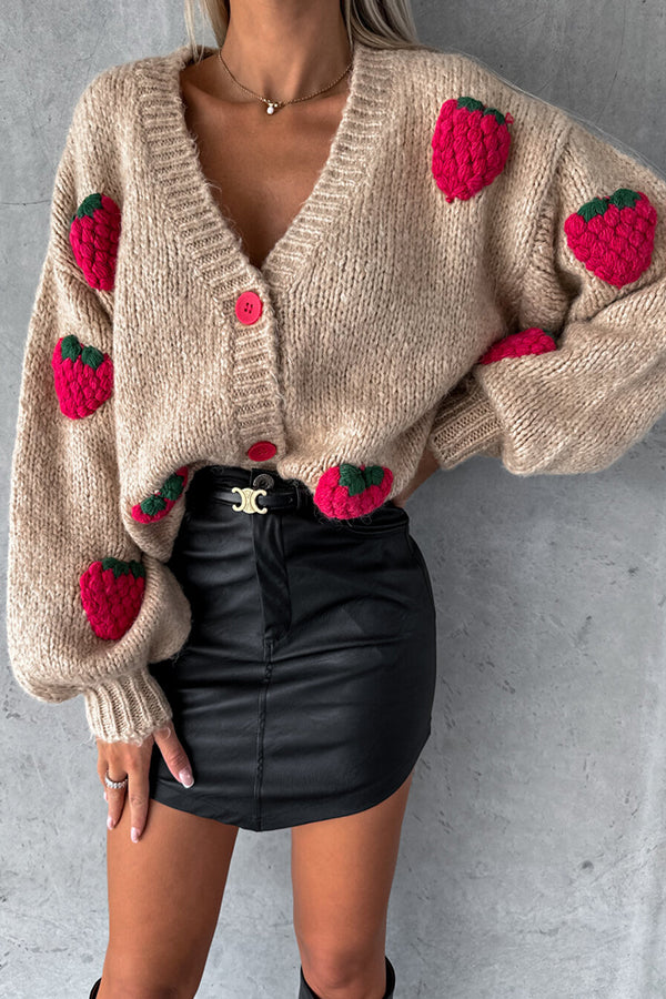 Sweet strawberry loose v-neck thick wool knitted top for women