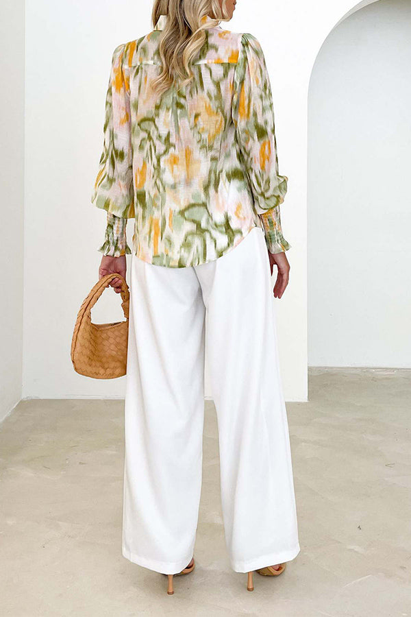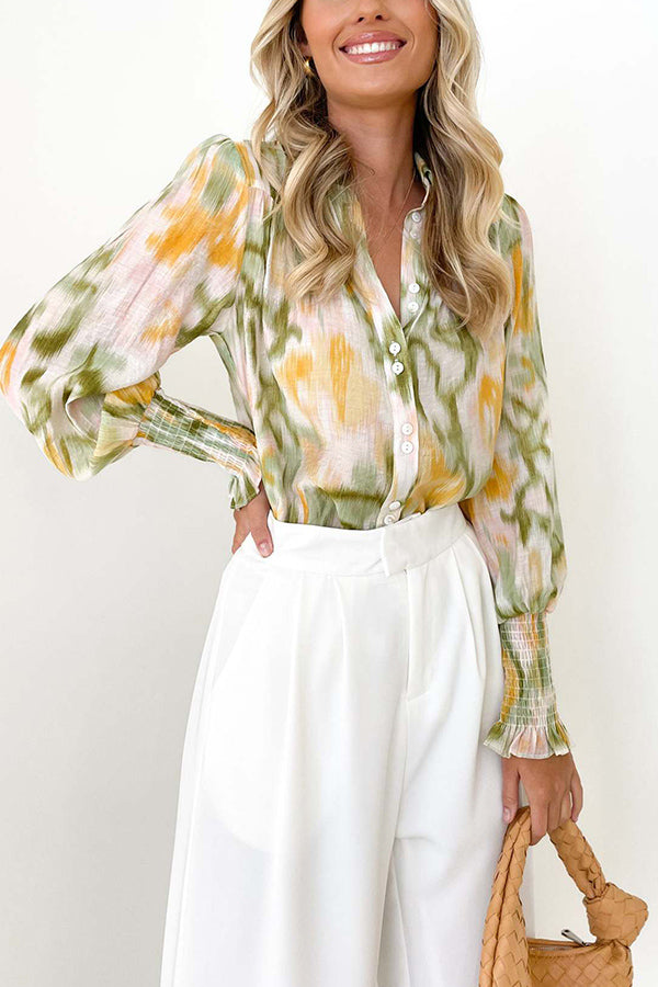 • V-neck cardigan lantern sleeve shirt fashionable women's tops